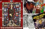 Ses maîtres en histoire de l’art sont Otto Dix, Jerôme Bosh et Bruegel mais ses autres influences sont les BD Comics, les arts forains (affiche de trains fantôme, cirque,…) en 1982, il auto-édite son propre Comix : “The mystery of Wolverine Woo-Bait” et réalise également “Muzzlers Guzzlers & Good Yeggs” (photo plus haut). Les tableaux de Joe, réalisés à l’acrylique, représentent la face obscure de l’histoire et de la culture américaine et sont peuplés d’anti-héros, de tueurs en série et autres personnages charmants. Sont représentés entre-autre, le légendaire countryman Hank Williams (tableau présenté plus haut), le dernier pirate américain Albert Hicks, le gourou tueur Charles Manson, Jesse James, Leslie et Daddy …heuu…Bonnie&Clyde je veux dire, etc.