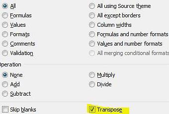 2 – Placez le curseur à l’endroit désiré dans votre page et rendez-vous dans le menu « Collage Spécial » (« Paste Special ») et choisissez l’option « Transpose ».