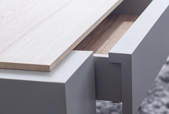 Un concept de base, laisser le choix à l’acheteur la personnalisation de sa table, ainsi 8 essences de bois sont disponibles pour le plateau et pieds, le tiroir lui pourra se décliner à travers un nuancer complet.