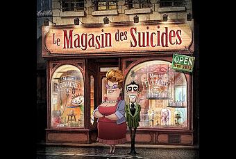 Et puis d’abord parce que c'est ce que l'on voit en premier, son graphisme élégant et chatoyant. C'est pas parce qu'on vend du suicide, en fiole, en flacon, au mètre, à la chaîne, par balle, par lame, par pendaison ou par noyade que tout ça doit être triste ! Alors avec un dosage fort bien exécuté, Le Magasin des Suicides se pare de belles couleurs pour mettre en valeur sa grisaille, et orne ses chansons d'un optimisme cynique et retenu, mais pourtant prêt à exploser. On aime son univers délicieusement décale, on s'amuse à retrouver dans cette société moribonde ses emprunts à la notre. Le Magasin des Suicides est drôle et séduisant, et sans l'avoir lu, mais connaissant l'homme de télé, on retrouve ce sens de l'humour et du décalage de son auteur Jean Teulé (qui fait d'ailleurs un caméo dans la Magasin des Suicides, en tant que client d'une crêperie...). Bref, Il y a selon nous du goût dans ce magasin-là !