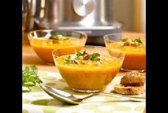 - Mixer grossièrement la soupe hors du feu. Servir avec les raisins secs, les pois chiches restants et la coriandre ciselée.