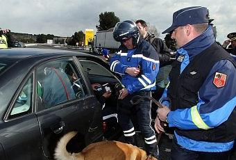 Et qui dit circulations, dit trafics en tous genres. Un seul exemple : sur les deux premiers mois de l'année, les agents de la direction régionale des Douanes de Perpignan ont déjà saisi plus de 7 tonnes de cannabis, soit le double de toute l'année 2012. Or, pour le préfet de la zone défense, les trafics vont encore changer d'échelle, et la lutte devra faire de même. La raison ? L'avènement du TGV entre la France et l'Espagne. "A partir d'avril, des villes comme Marseille et Barcelone seront reliées, et il faut voir comment l'on va s'organiser de part et d'autre", explique Hugues Parant, qui s'inquiète notamment "de la façon dont nos amis espagnols vont gérer le choc". Car là-bas, crise oblige, l'heure n'est pas vraiment aux démonstrations de forces. Démonstration de forces de l'ordre à la barrière de péage du Boulou dans les Pyrénées-Orientales, entre autres.