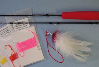 Superbe idée chez Let’s Fish Pet Toys ! Parfait pour les dimanches après midi cotonneux où on zone en pyjama ne sachant comment tuer le temps, le jouet pour animal domestique qui te permet aussi de t’exercer à lancer ta mouche au plus près des babines de matou..