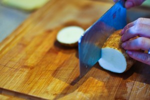 - Couper les pommes de terre, afin d'obtenir de beaux rectangles.