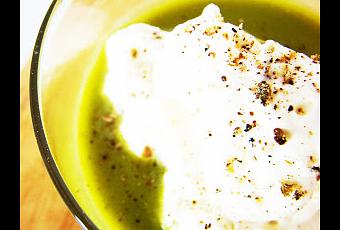 - Au moment du service, verser le velouté puis une cuillerée de crème poivrée.