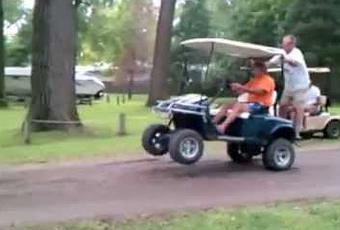 Le golf est un sport dangereux (il faut dire que dans certains extraits quelques uns vont au devant). Le golf et ses accessoires : club, balle, voiturette (surtout voiturette).
