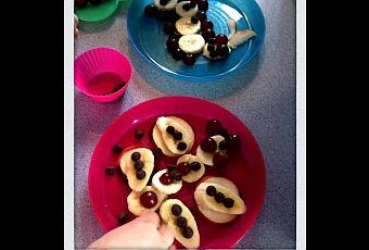 Au retour, cela nous a inspiré des collations aux fruits* en forme de papillon et de chenille, l'idée de mon fils. Avec une pomme, une banane et des raison (moins de 3$ pour 2 enfants) et ça prend à peine 5 minutes. Et, c'est eux qui ont fait le gros du travail. De toute façon, je ne sais pas pourquoi je dis ça, ça ce voit, non? ;-)