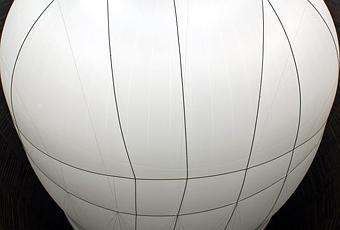Surnommés « les Christo », Christo et Jeanne Claude était l’un des couples mythiques du Land Art, ne reculant ni devant le fait d’emballer littéralement le Reichstag allemand, ni même devant le fait de draper entièrement une portion de la côte australienne. Cette fois Christo revient en solo, c’est la première oeuvre qu’il présente depuis le décès en 2009 de sa femme et collaboratrice Jeanne-Claude , et elle n’en est pas moins monumentale. Big Air Package est présentée comme « la plus grande réalisation sculpturale en intérieur jamais réalisée ». Et elle a de quoi: une auteur de 90 mètres, un diamètre de 50 mètres et un volume de 177.000 mètres cube. La structure (sans squelette) est maintenue en position verticale par des ventilateurs soufflant de l’air dans plus de 20.000 mètres carrés de tissu de polyester blanc translucide. Cette colossale installation se tient dans un gazomètre à Oberhausen, en Allemagne, et sera ouverte au public jusqu’à la fin de l’année 2013.