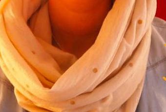 Une simple customisation, qui apporte du peps à une écharpe unie ! On la doit à Lilikus qui a eu la bonne idée d’utiliser des oeillets pour un résultats sans bavure ;)