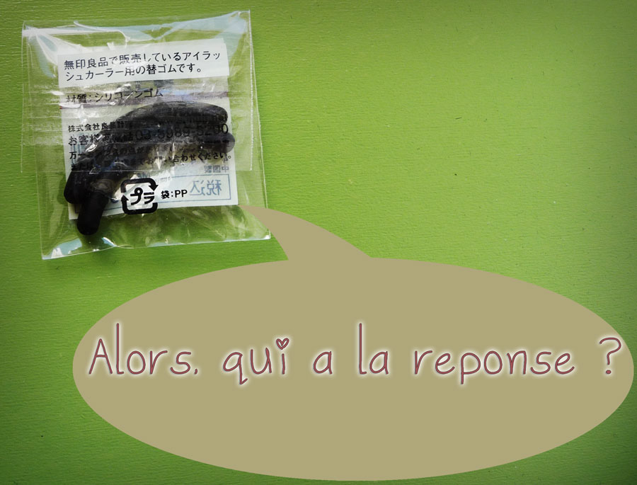 Alors pour celle/ceux qui voudrait jouer, une partie des Franciliens et des Lyonnais ainsi que tous ceux qui achètent sur l’e-shop auront reconnu la marque : Muji. Voici donc un petit sachet Muji qui combien 2 petites choses, mais quoi donc ? Hop on retourne le sachet et ça devient plus facile. Allez, je vous aide, ça a un rapport avec les yeux. J’en vois qui ont déjà trouvé et d’autre pas encore ?