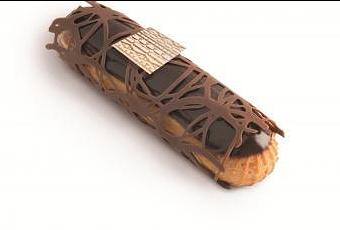 Un superbe éclair au chocolat au lait avec des notes de praliné amande enveloppé dans une dentelle croquante … de chocolat