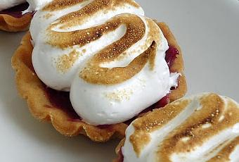 Des petites mignardises légères et fruitées, ces mini tartelettes en pâte sablée sont garnies d'un crémeux au cassis et couronnées d'une meringue italienne dorée au chalumeau.