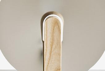Une structure de bois en frêne et wengé ajusté sur un disque d’acier inoxydable poli.