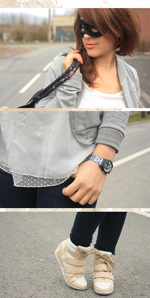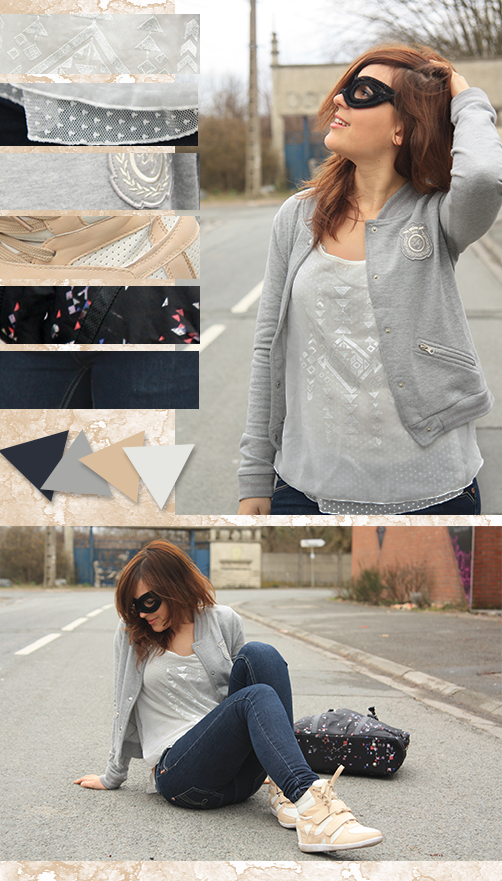 Un ptit look à ptit prix :Blouson teddy molletonné Mandarina 10€ en soldesTop ethnique 12,99€ kiabiSneakers kiabi 29€99Jegging troc entre nanaMontre Kris Tate wysiwatchSac roxy ( cadeau de mon frère)