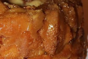 8- Lorsque la moitié est en place, réchauffer à nouveau un peu le caramel afin de le liquéfier et le verser sur les boules puis parsemer du reste de pécan.