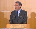 "Mesdames, Messieurs, Je vous remercie d'avoir accepté cette rencontre. J'ai voulu vous dire quel est, à mes yeux, l'enjeu des semaines qui viennent pour le Mouvement démocrate et de la manoeuvre qui est engagée autour de lui. Depuis quelques jours, nous savons de manière certaine que des mouvements présentés comme internes, la mise en cause de la ligne d'indépendance de notre mouvement, n'avaient en réalité pas grand chose…