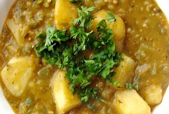 Ceci dit, vous trouverez la version originale, en anglais seulement, directement ICI, sur le blogue de Oh She Glows. Vous verrez par vous-mêmes, cette soupe de pomme de terre hors du commun (Not Your Average Potato Soup) ne contient que de bonnes choses. Entre autre, des pommes de terre, des pois verts cassés, du céleri, de l'ail et un assortiment d'épices impeccable, soit le paprika fumé, l'origan, le thym, la poudre de chili et le poivre de Cayenne.