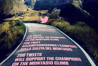 C’est lors de la dixième étape de la compétition, lors de l’ascension de l’Altopiano del Montasio, l’un des cols les plus durs du tour, que les messages seront affichés. Posés sur la route, ils seront sélectionnés sur Twitter et auront pour but de soutenir les coureurs.