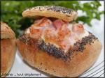 Verser cette préparation dans les petits pains et mettre au four préchauffé à 200° pendant 10 minutes.