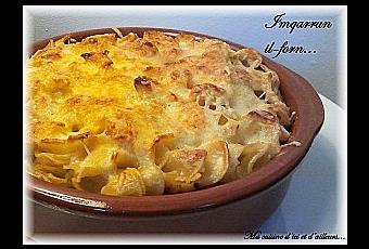 je vous propose de déguster un plat très copieux et savoureux d'origine maltaise... Pour 4 personnes (bon mangeur!!!), il vous faut: 500 gr de pâtes (farfalles pour ma part mais très bon avec des macaronis) 1 oeuf 3 cuillères à soupe de parmesan râpé 200 gr de viande de boeuf haché 100 gr de lardons 2 boîtes de tomates pelées 1/2 verre de vin 1 gros oignon 2 gousses d'ail 2 feuilles de laurier huile d'olive sel, poivre Faîtes cuire les pâtes jusqu'à ce qu'elles soient al-dente, égouttez-les et assaisonnez-les avec un peu d'huile d'olive. Préparez la sauce en faisant revenir l'oignon coupé finement, l'ail écrasé, la viande hachée et les lardons pendant 5 minutes puis ajoutez le vin et le laurier. Baissez le feu et laissez cuire à feu doux pendant quelques minutes avant d'ajouter les tomates, le sel et le poivre. Baissez le feu complètement et laissez mijoter une heure en remuant de temps en temps. Déposez la sauce au fond d'un plat et laissez refroidir. Pendant ce temps, mélangez les pâtes avec l'oeuf cru, un peu d'huile d'olive et le parmesan. Versez le tout sur la viande. Il ne faut pas lisser les pâtes, elles doivent dépasser légèrement car elles doivent devenir un peu croquante à la cuisson. Enfournez à 180° pendant 30 minutes. Le dessus du plat doit être bien doré... Dégustez aussitôt !!! Bon appétit !!!