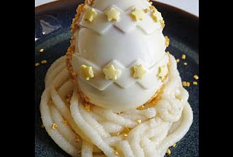 Œuf de pâques au chocolat blanc, à la mousse de framboise et financier pistache
