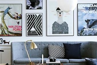 Chez nous, les murs sont blancs, les cadres sont posés par terre, c'est un concept. J'aime pourtant beaucoup ces compositions de cadres, où les formats sont choisis, la disposition semble réfléchie, et où le résultat est harmonieux, voici de jolis exemples: