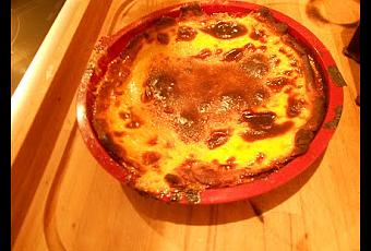 - Verser la crème sur la pâte et enfourner 35 minutes.