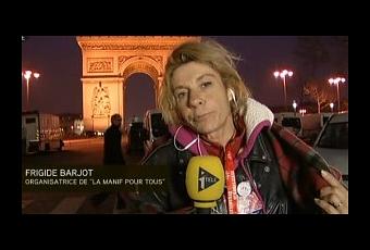 Quand le journaliste l’interroge sur les violences survenues lors de la manifestation, la porte parole de la Manif pour tous déclare « ne pas avoir vu des violences mais 1,4 millions de personnes calmes et joyeuses« . « Arrêtons de nous focaliser sur les incidents » dit-elle « Monsieur arrêtez avec les violences ! C’est un épiphénomène ! Nous avons passé six heures pacifiquement et calmement. Mais arrêtons ! Nous continuons parce que nous étions 800 000 la dernière fois. 1,4 million cette fois ci. Nous serons 2,5 millions la prochaine fois. Arrêtez de mentir aux Français » s’énerve Frigide Barjot.
