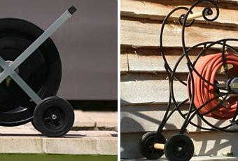 Les dévidoirs vous permettent d’enrouler votre tuyau pour éviter de le laisser par terre (ce qui peut entrainer la mort de la pelouse qui se trouve en dessous!). Ils vous permettent de ranger votre tuyau d’arrosage en apportant une touche décorative. Les dévidoirs se raccordent à une arrivée d’eau puis l’autre tuyau qui s’enroule prend le relais. Différents types de dévidoirs existent :