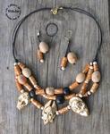 mes petits masques de Fimo dorée à la feuille d'or ... des graines du Pérou ... et quelques tubes dorés !!