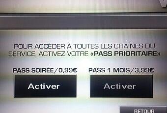 Je tente l’expérience plusieurs fois avec le même résultat : les pubs passent bien mais impossible de voir le programme sans passer à la caisse.