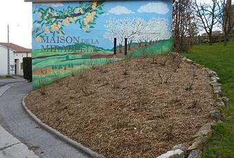 La Maison de la Mirabelle possède une superbe peinture murale située sur le mur juste en face de l'entrée!