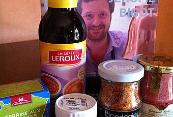 - une bouteille de chicorée liquide Leroux : bon oui j'aime la chicorée et bien que je n'en consomme que très peu, le fait de l'avoir en format liquide pour parfumer les plats. Personnellement, je l'ai toujours consommée soluble mélangée à du lait chaud, mais bon pourquoi pas, à tester donc ! Ce qui me gène un peu, c'est que je ne vois pas en quoi la chicorée représente la gastronomie du terroir français...