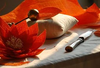 Ici, une fleur prend forme.. teinture de la matière, création d'un mini-patron pour calibrer les différentes tailles de pétales, découpe précise, modelage et création de nervures, assemblage.... Vive l'artisanat d'Art !
