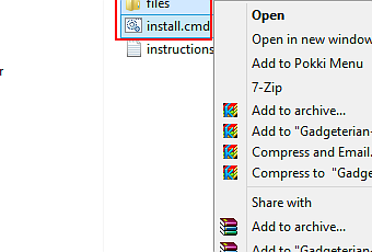 Une fois copié, faites un clic droit sur « INSTALL.CMD » et sélectionnez «Exécuter en tant qu’administrateur». Cette étape est assez importante, car l’application ne s’installe pas sans les droits d’administration.