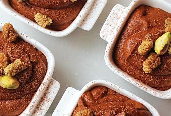 Je n'ai pas l'habitude de clore mes repas par un dessert, mais celui-ci fait partie des exceptions... J'avoue même, à ma grande et coupable honte, qu'il m'est arrivé,certains soirs, de ne rien avaler d'autre et de me contenter d'un ramequin de mousse au cacao, assise dans un fauteuil, un bon bouquin entre les mains et du piano dans les oreilles. Après tout, la patate douce, c'est un légume, non ?