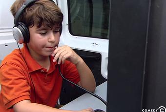 Equipé d'une oreillette, ce type va passer un entretien d'embauche dans une agence d'avocats. Ses réponses vont lui être dictées par un enfant de 7 ans. Il va