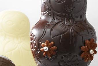 Ces poupées russes sont déclinées au chocolat au lait, noir ou blanc, avec à l’intérieur des fritures et des œufs garnis praliné. Prix: 26 euros
