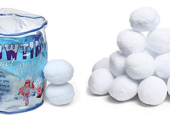 Le paquet de Snowtime Anytime Snowballs contient vingt fausses boules de neige en peluche, pour faire des batailles de boules de neige toute l’année à l’intérieur de la maison et en tout temps.