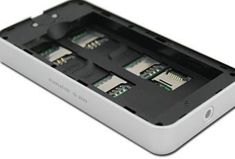 Cet accessoire prend la forme d’un petit boitier indépendant, relié au smartphone en Bluetooth. Il propose quatre emplacements pour les cartes SIM, ce qui permet donc d’en avoir cinq actives en même temps avec celle du smartphone. Si vous souhaitez l’utiliser avec une tablette ou un baladeur multimédia comme l’iPod Touch, il faudra se « contenter » de quatre au maximum. Il est quadri-bande (850/900/1800/1900 MHz). Du fait de la connexion Bluetooth, il ne faut en revanche pas espérer utiliser les cartes SIM dans le boitier pour un débit supérieur à de l’Edge. Mieux vaut donc se servir de celle qui reste dans le smartphone pour les sessions de Web et les autres pour les appels vocaux, les SMS et les MMS. Notez que le boitier en question fonctionne avec les appareils Android et iOS. Mais dans ce dernier cas, il faut que votre iPhone, iPad ou iPod Touch soit jailbreaké pour pouvoir utiliser l’ensemble des fonctionnalités