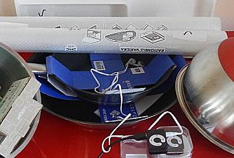 De plus il a su accorder ses cadeaux a notre cuisine des cul de poule rouge !! trop la classe ..