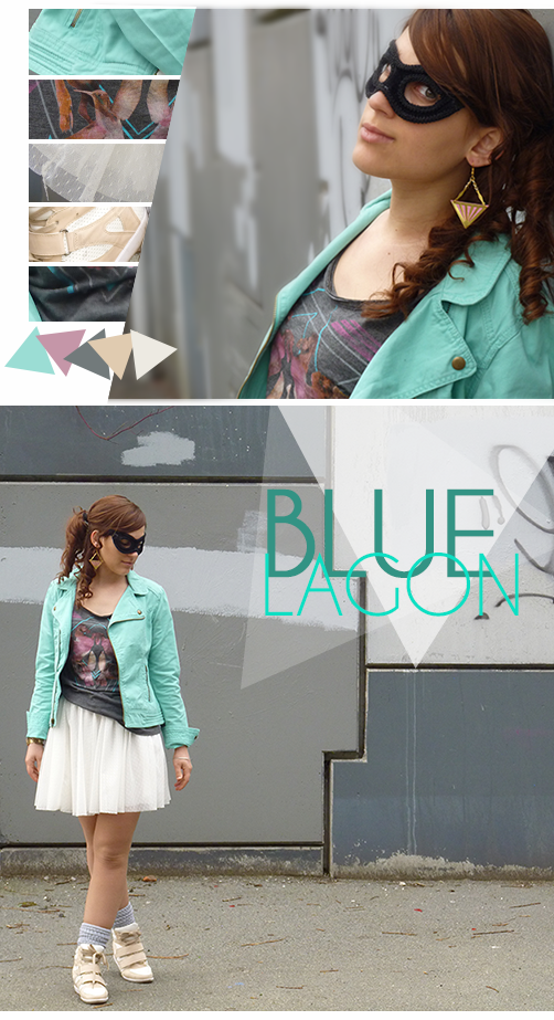 Perfecto coton Camaieu 39€Jupe Patineuse Pimkie usine 10€Tshirt troc entre modeuse 15€Sneakers compensées 29€ KiabiBoucles d'oreilles mamzelle pampilles