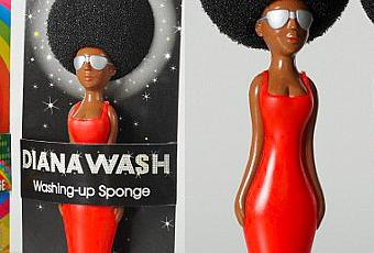 En fait d’éponge il s’agit d’une petite brosse afro… Bien grattante. Il existe même l’afro-contenant pour vos ustensiles :
