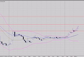 Après avoir validé le franchissement de l'importante résistance des 2,70€, la valeur poursuit sa progression comme prévu vers la prochaine située à 3,42€. Comme je le soulignais dans l'analyse du 10 mars dernier (http://les-pepites-de-jm.blogspot.fr/2013/03/analyse-technicolor.html), le potentiel de hausse semble important. Si les 3,42€ sont franchis dans les prochaines semaines, la prochaine résistance se situe à 4,32€. A suivre de très près.