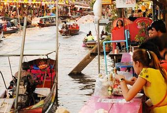 La magie du marché flottant d'Amphawa ne tient pas tant en tout ce que vous pouvez y trouver, y manger, y remanger, même si la liste est tellement longue longue si longue, mais d'abord au simple fait que vous aurez beaucoup de mal à vous en écarter, à le quitter et à ne pas y revenir très très vite ! Vous arriverez sans doute comme moi alors que le jour brille encore de ses couleurs éclatantes et vous resterez bien après la tombée de la nuit, tant la magie du marché vous prend, au point de vous faire oublier l'heure et bien d'autres choses… Et si jamais vous voulez savoir tout ce que vous pouvez y trouver, allez-y avec un connaisseur attentionné et prêt à répondre à toutes vos questions, comme Sekson, l'a fait pour moi, infatigable guide amical face à mes et ça et ça et ça… qu'est-ce que c'est ? Ou alors mangez, mangez, mangez !!! Vous n'aurez de toute manière jamais assez faim pour en arriver à sa fin… Bonne visite ! Mais pourquoi, je sens qu'une grande histoire est en train de naître là… est-ce que je vous raconte ça…
