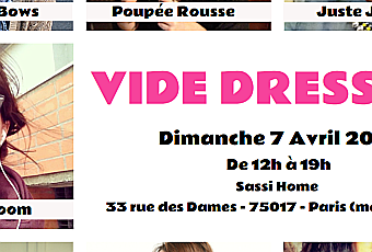 J'ai le plaisir de vous annoncer notre vide dressing le dimanche 7 avril de 12h à 19h à Sassi Home 33 rue des Dames dans le 17ème à Paris (métro Rome).