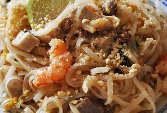 En ce lundi de Pâques, après une bonne grasse matinée, l'envie de pâtes de riz sautées me prit. Alors, pour quelle recette allais-je opter ? Tiens, pourquoi pas essayer la recette des Pad Thaï de l'excellent blog Canard du Mékong (Merci Philippe !). Je lis la recette, les ingrédients, bon il me manquera les pousses de soja, la ciboule et le tofu... Pour cette fois, ça sera une version "light".