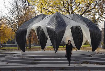 Des étudiants en architecture de l’Institut of Computational Design (ICD) et de l’Institut für Tragkonstruktionen und Konstruktives Entwerfen (ITKE) de l’université de Stuttgart ont conçu un pavillon expérimental entièrement fabriqué à partir de composites en fibre de carbone et de verre. Ce projet interdisciplinaire réunit donc des chercheurs en architecture, design, ingénierie et même des chercheurs en biologie de l’Université de Tübingen, pour étudier les interactions entre les stratégies de design et les nouveaux processus de fabrication orientés vers la robotique et le biomimétisme. Les chercheurs ont ainsi porté leur attention sur le principe morphologique de l’exosquelette, dont on sait qu’il peut représenté un concept central en architecture, notamment combiné avec les nouveaux matériaux composites.