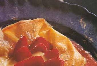 Garnissez-les de crème mousseline et de lamelles de fraises. Poudrez de sucre glace.
