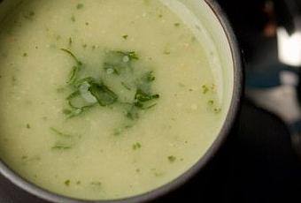 Mixez la soupe avec le persil et réchauffez l’ensemble au moment de servir.